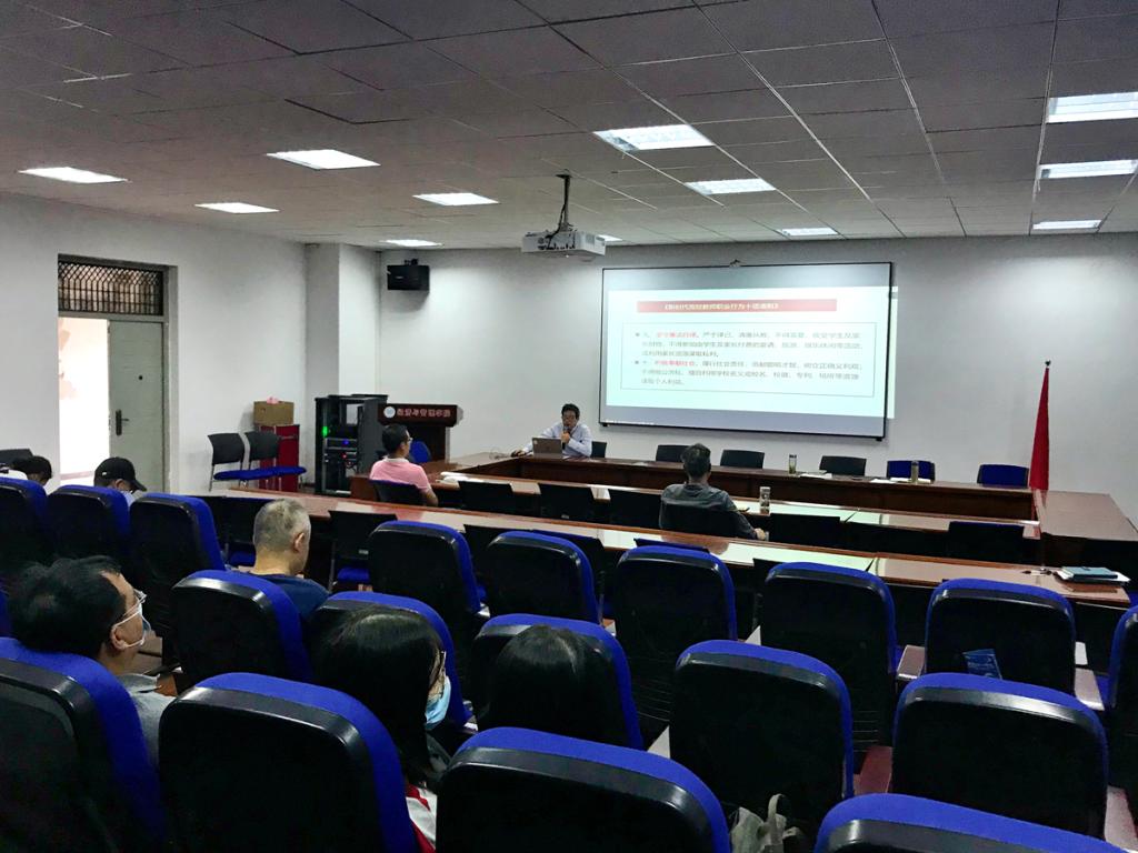 房桂兵首先带领全体党员认真学习了习近平总书记在中央党校(国家行政学院)中青年干部培训班开班式上的重要讲话精神,要求大家守住政治关、权力关、交往关、生活关、亲情关,正心明道、怀德自重,勤掸“思想尘”、多思“贪欲害”、常破“心中贼”,以内无妄思保证外无妄动。课上,房桂兵还与大家一起重温了《新时代高校教师职业行为十项准则》,强调教师要不断加强领悟能力,严格遵照中央八项规定精神,做到廉洁自律、严于律己、清廉从教从研,将教书育人的使命担当时刻记在心头。他特别强调了高校的特殊地位和特殊影响,以高校范围的管理类腐败、学术类腐败、师德师风问题等反面案例,为教职工敲响警钟。